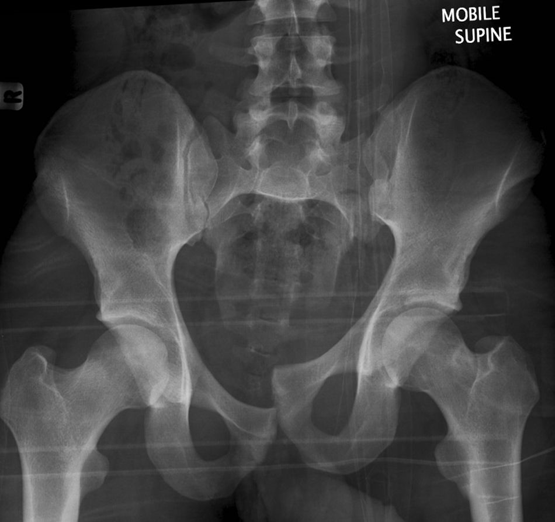 直接暴力导致的髂骨翼单独骨折,没有骨盆环的分离移位。