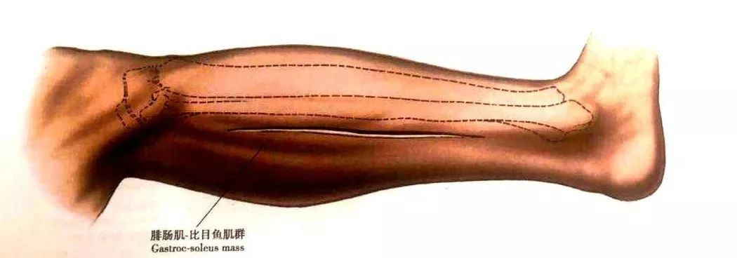 腓肠肌的外侧缘在小腿很容易触摸到。