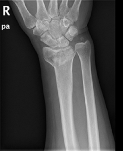 诊断:陈旧性桡骨远端骨不连,假关节形成,桡腕关节已融合。