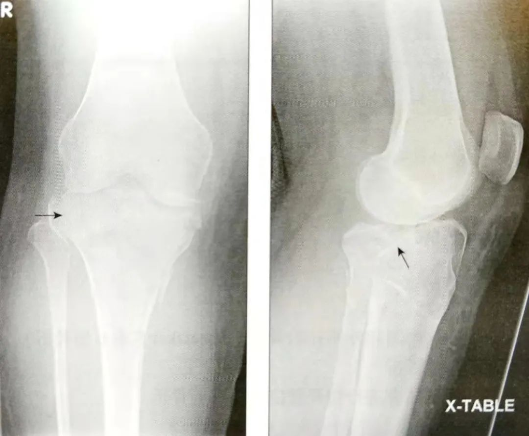 CT可以提供完整的关节损伤信息,包括髁间嵴骨折,关节面塌陷的位置和程度,骨折块的大小,前交叉韧带撕脱骨折和后交叉韧带胫骨附着点撕脱骨折。