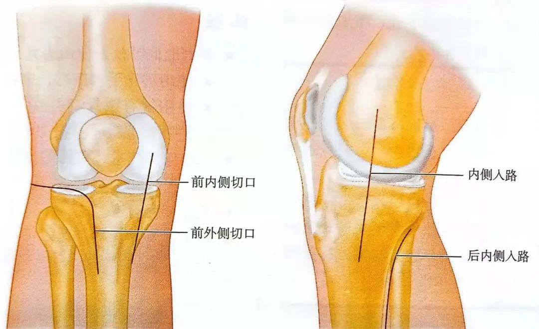 通常采用小切口复位关节面。切口要根据骨折情况来选择,通常包括:①前外侧或者前内侧切口;②内侧或后内侧切口。