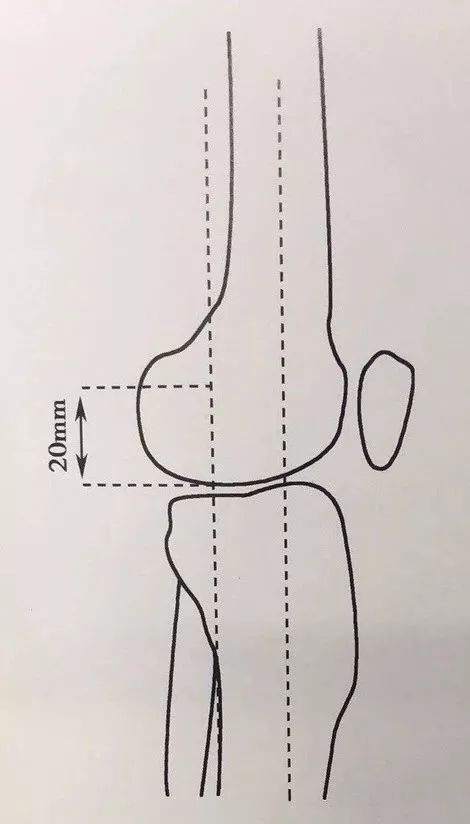 图3-3-7膝关节的活动轴应位于股骨关节面上方2cm股骨髁中后1/3处
