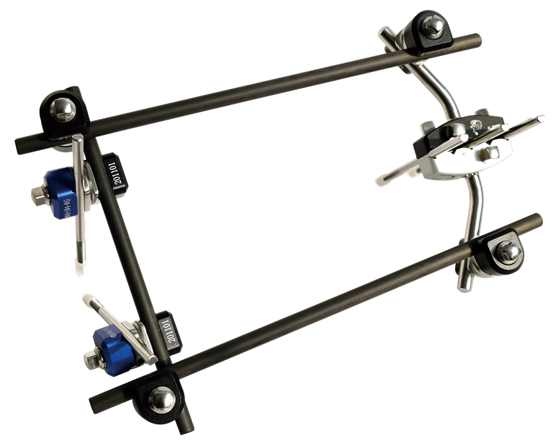 外固定支架是应用固定针经皮穿入骨折端周围,并用各种形态的连接杆将固定针结合在一起的骨固定器械,有微创、可调节的特点。