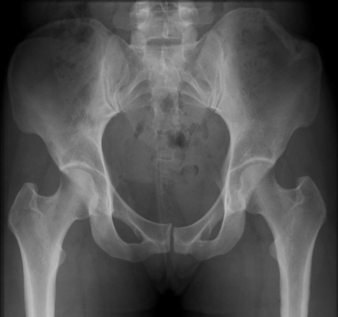 直接暴力导致的髂骨翼单独骨折,没有骨盆环的分离移位。