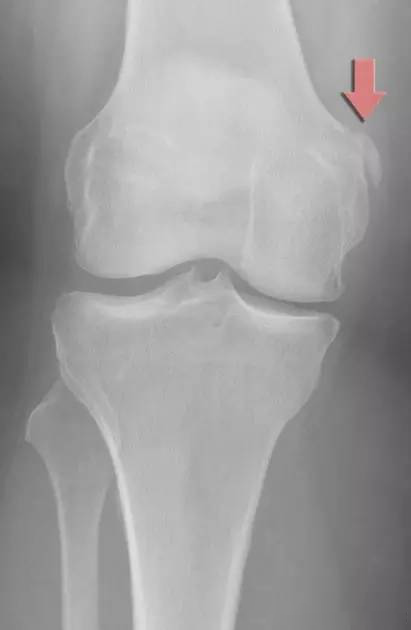 膝关节内侧副韧带附着处的内侧股骨髁的撕脱性骨折。