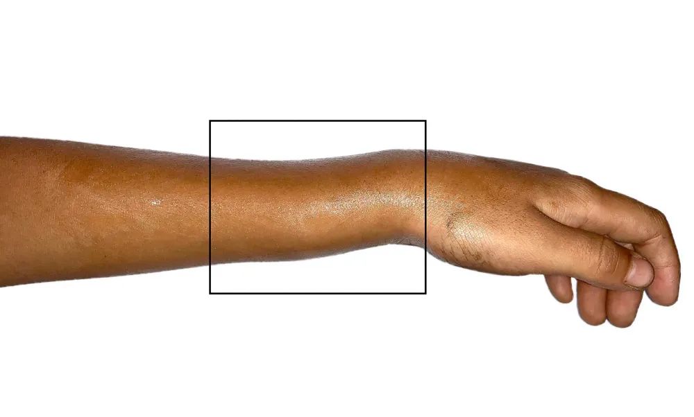其发生率占全身骨折的 0.1%。临床上表现为与 Colles 折相似的「银叉畸形」及相应的体征。