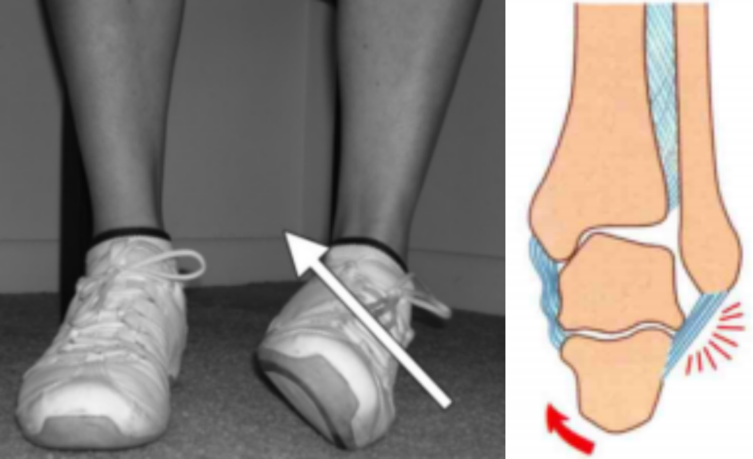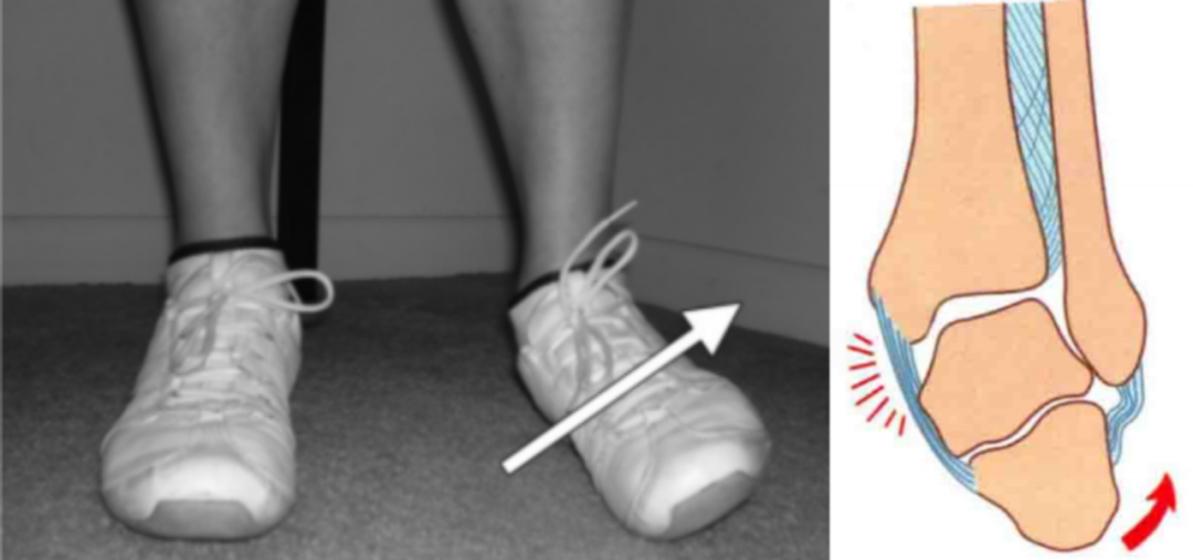 损伤时,足呈旋后位,距骨内收,使踝关节外侧韧带紧张。