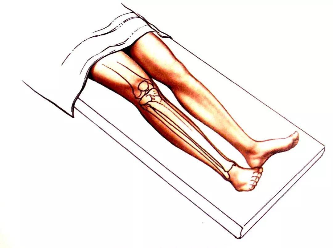 胫骨的上端呈三角形,其后内侧面突出,很容易触摸到,即使患者非常肥胖也能触及。