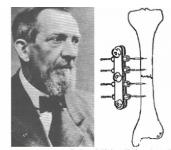 几年后,比利时安特卫普的Albin Lambotte医生在Parkhill的基础上推出了一个改良型的装置。与Parhill不同的是,他将四枚骨针用两块厚重的钢板夹固,变外固定支架为刚性装置,使得患者可以在伤后早期活动,这种做法一举奠定了现代外固定支架 “经皮置钉、体外刚性连接” 的理念基础。