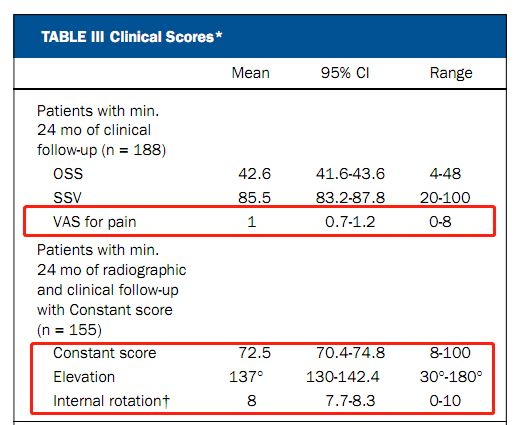 肩关节Constant功能评分平均72.5分,上举可达137°